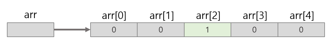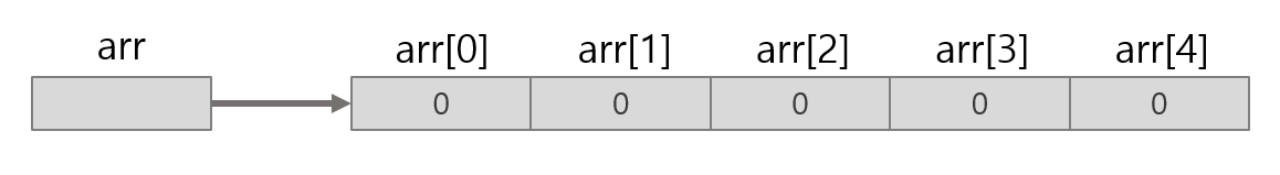 - int타입의 arr라는 이름을 가지며 값을 5개 저장할 수 있는 배열을 만들고자 한다.