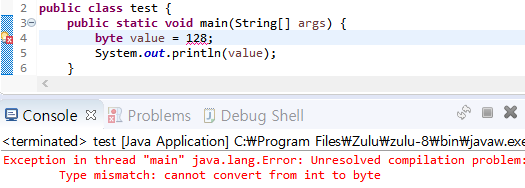 - 아래와 같이 byte의 범위를 벗어나는 값을 저장하려고 하는 경우, 형변환을 하지 않으면 "cannot convert from int to byte"와 같은 에러가 발생한다.