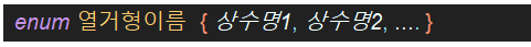 - 간단하게 아래와 같이 괄호 { } 안에 상수의 이름을 나열하면 된다.