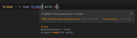 - 하지만, 생성자를 생성하였다고 해서 객체를 생성할 수 있다는 것은 아니다. enum 생성자의 제어자는 묵시적으로 private이다.