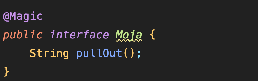 - 우리가 구현하고자 하는 것은 @Magic이라는 커스텀 애노테이션을 만들고, @Magic 애노테이션이 붙어있는 Moja라는 인터페이스에서 MagicMoja.class 파일을 생성해주는 코드이다.