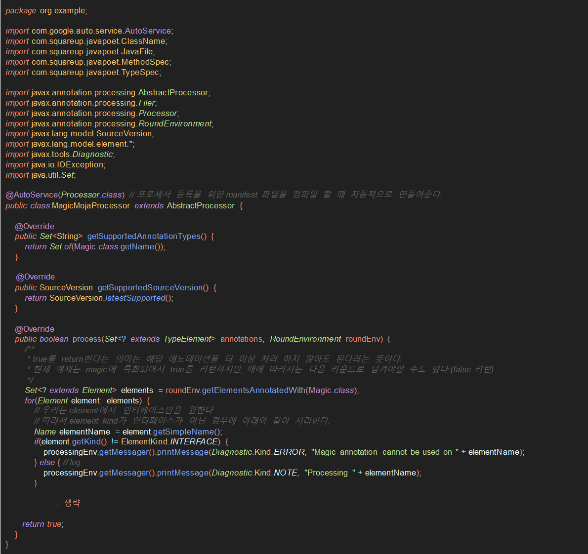 - MagicMojaProcessor 클래스를 만든다. (중간에 javapoet등을 이용한 부분은 생략했다..)