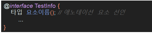 - 애노테이션 내에 선언된 메소드를 애노테이션의 요소라고 한다.