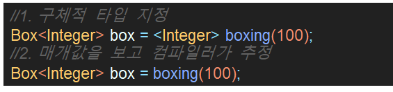 - 제네릭 메소드는 두 가지 방법으로 호출 할 수 있다.