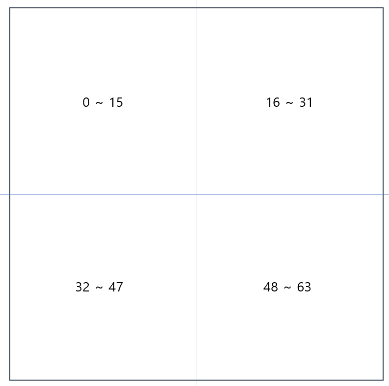 그리고 원하는 지점(7, 7)을 찾을 때까지, 해당 사분면에서 또 다시 4등분으로 나누면 된다.