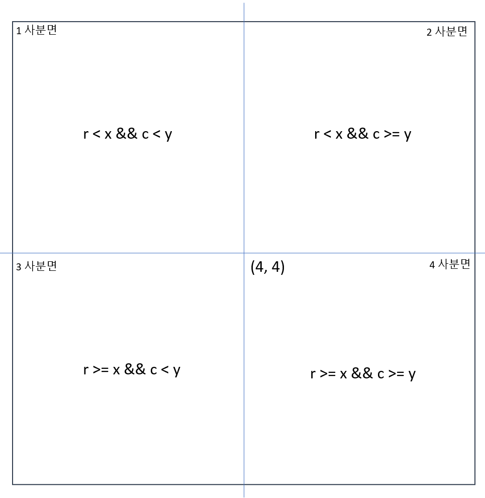 그리고 4개의 사분면은 아래와 같은 방법으로 나눌 수 있다.