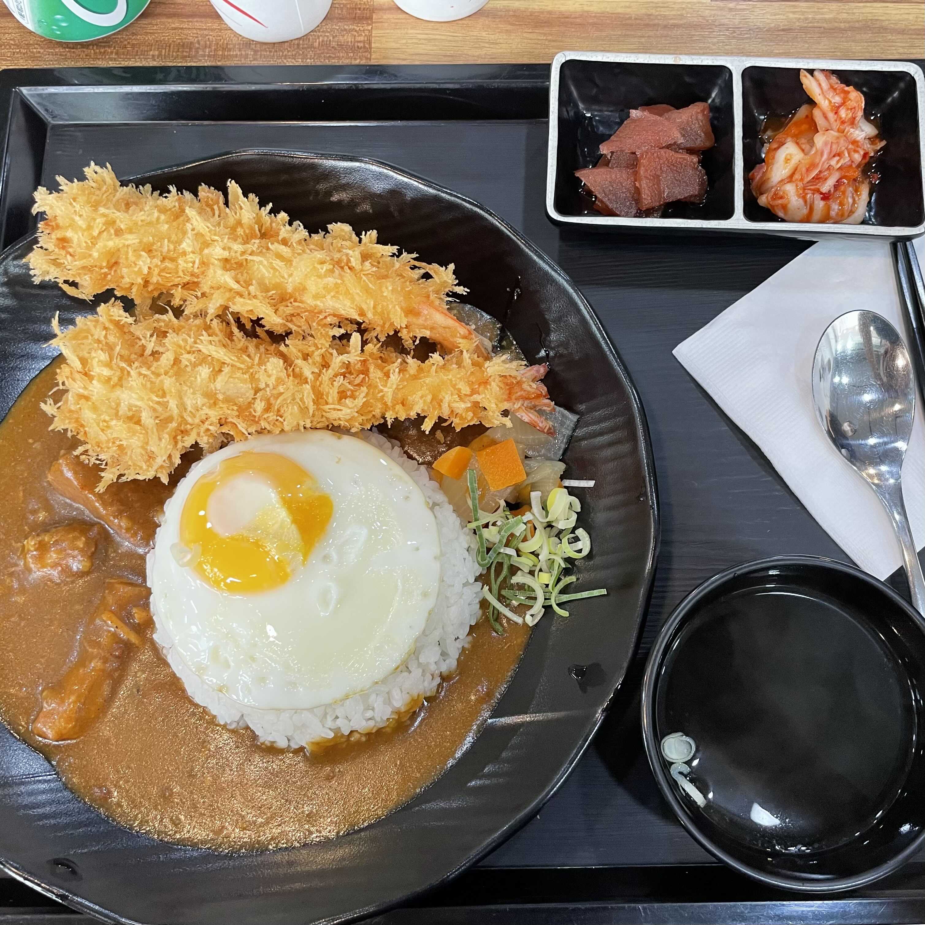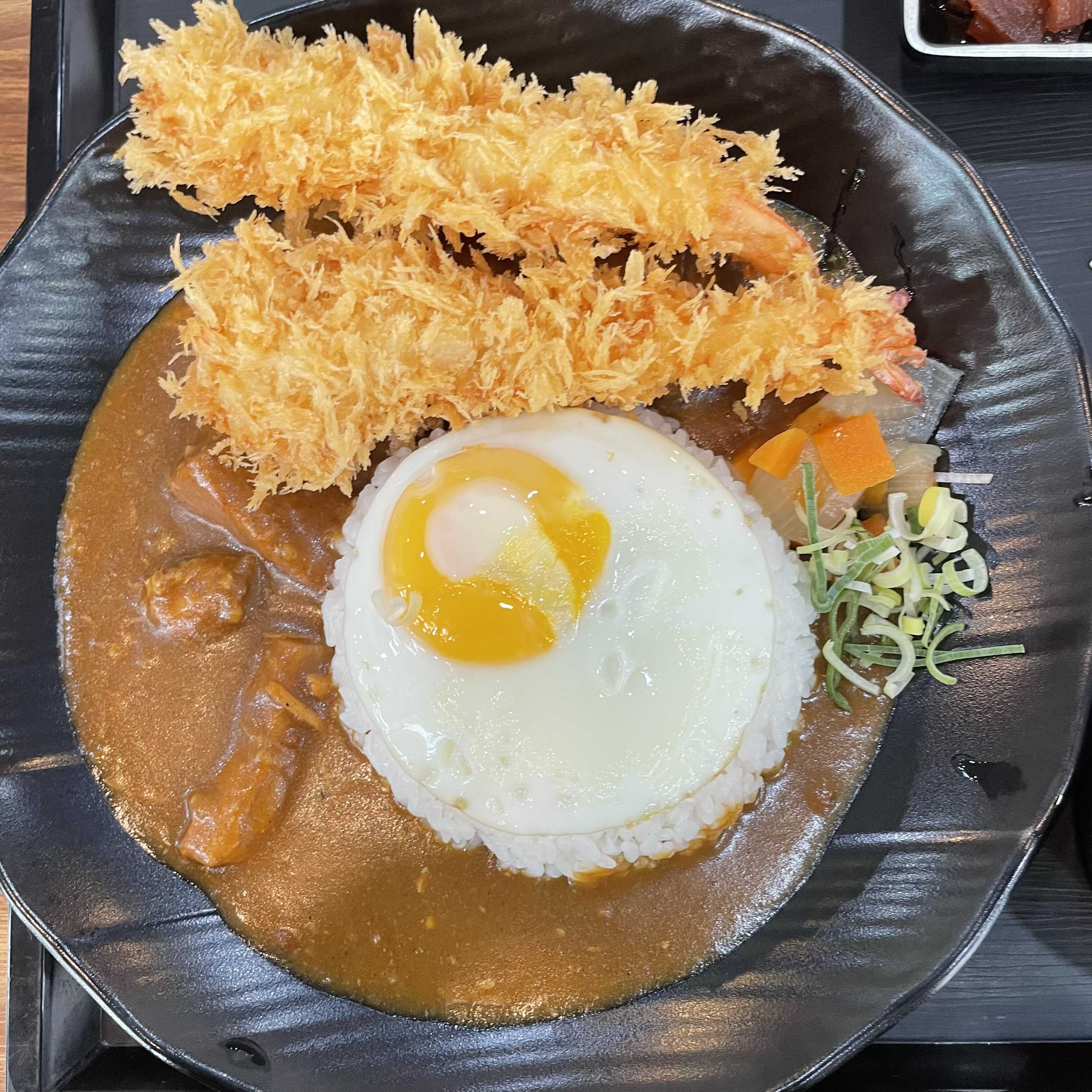 돼지고기카레 + 계란후라이 + 새우튀김