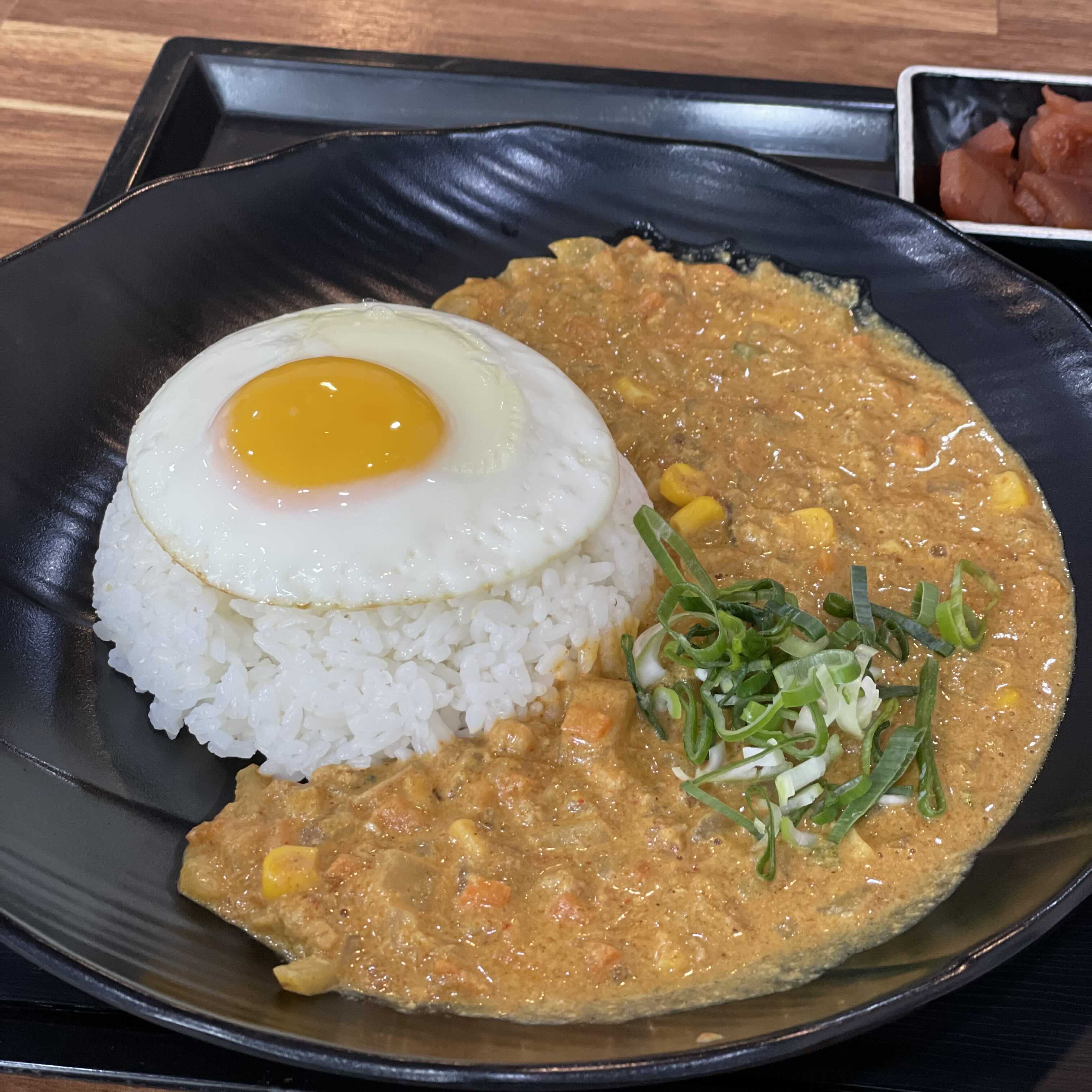 밀크카레 + 계란후라이 - 메뉴는 돼지고기카레(순한맛/매운맛)이랑 밀크카레 2가지 (기본/양많이)