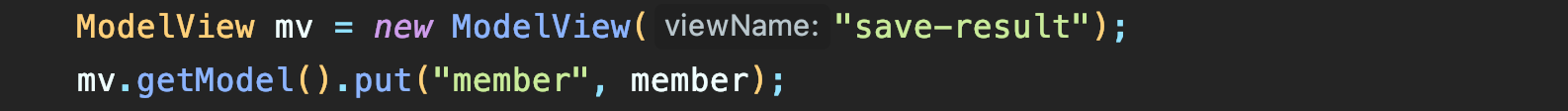 - 응답 결과로 ModelView 객체 반환 (뷰 이름과 뷰에 전달할 Model 데이터)