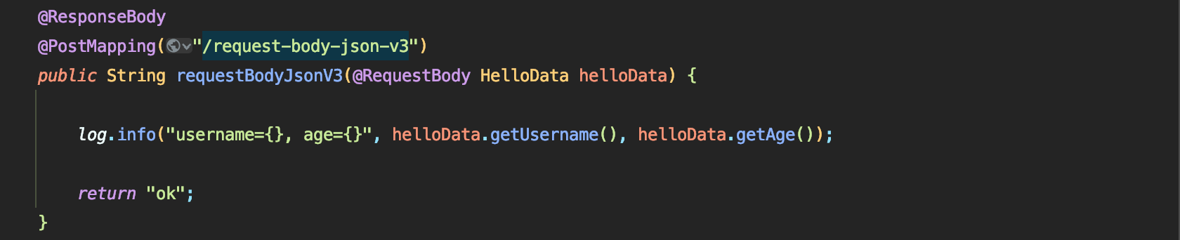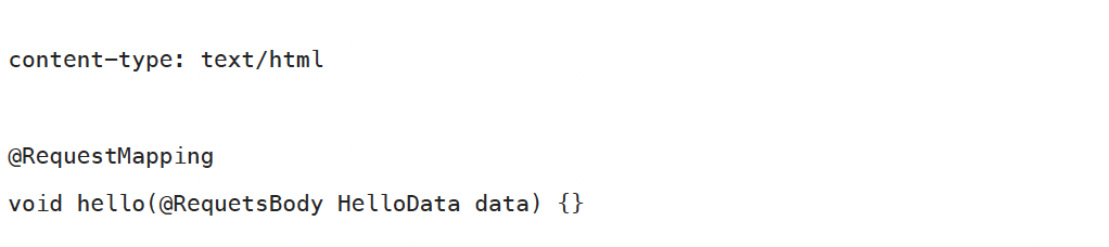 - 예) @RequestBody의 대상 클래스 (byte[], String, HelloData)