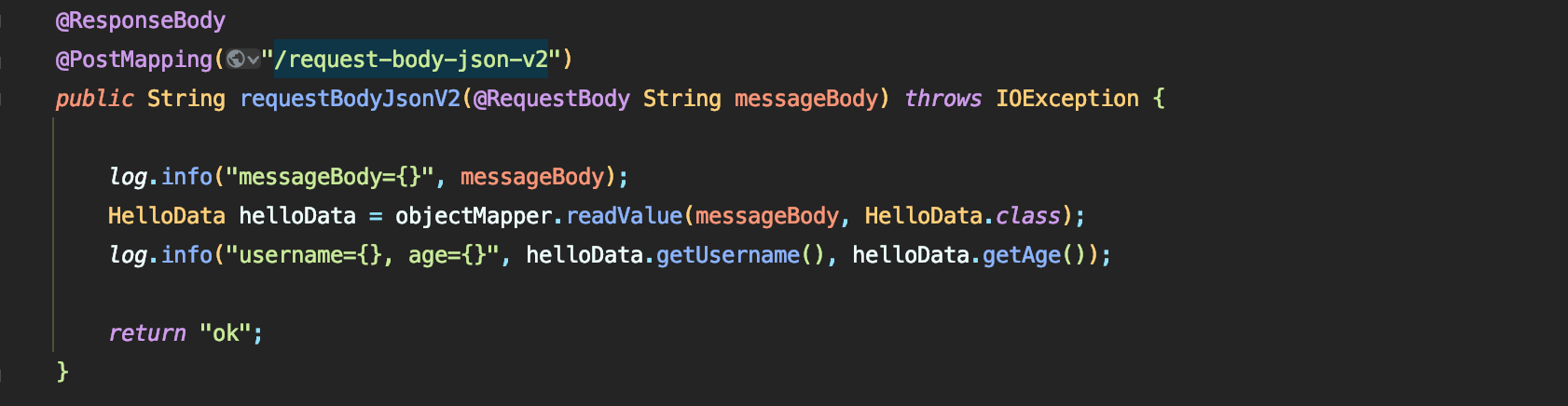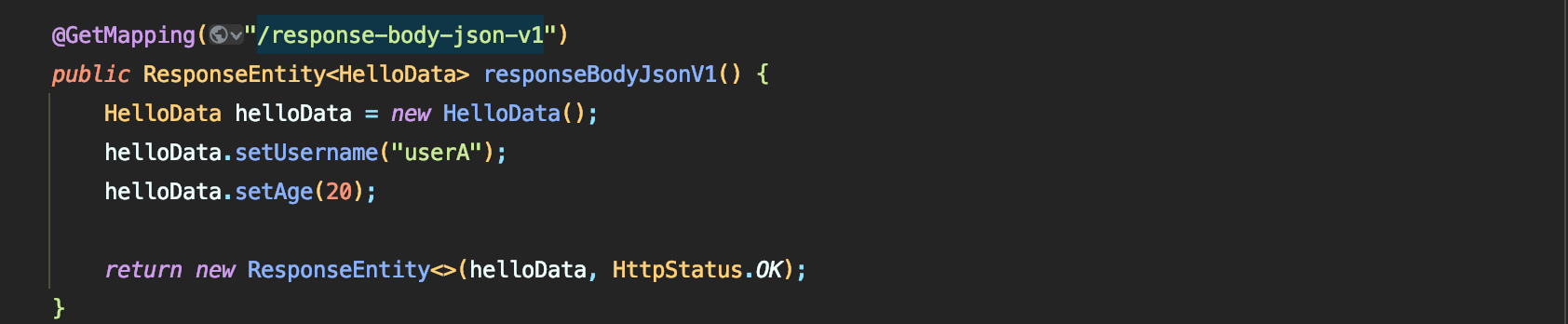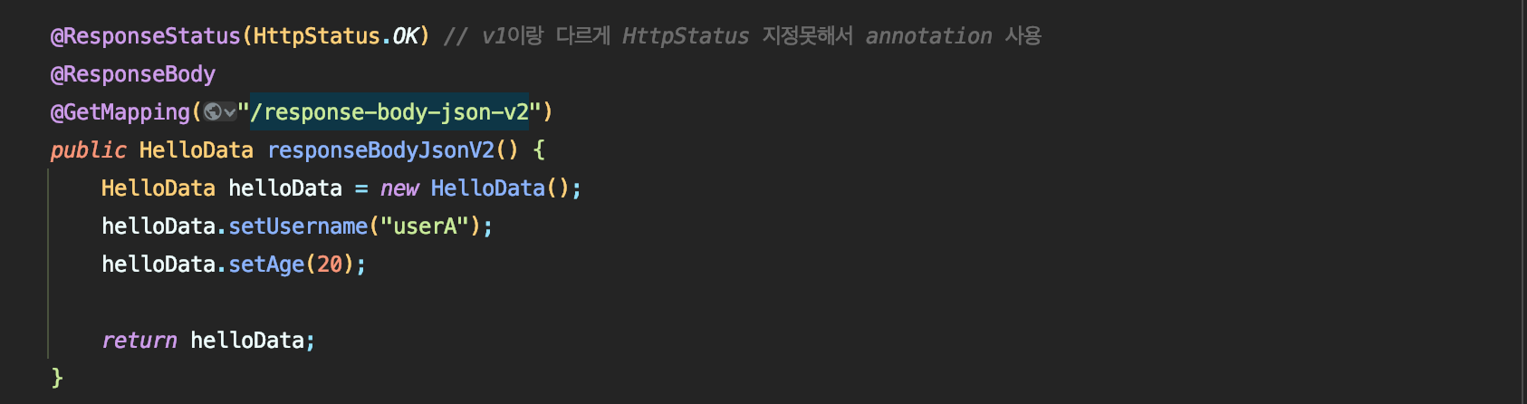 - 예) return의 대상 클래스 (byte[], String, HelloData)