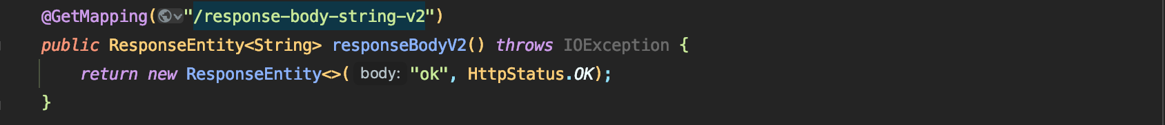 - @ResponseStatus(HttpStatus.OK) 애노테이션 사용하여 응답 코드 설정