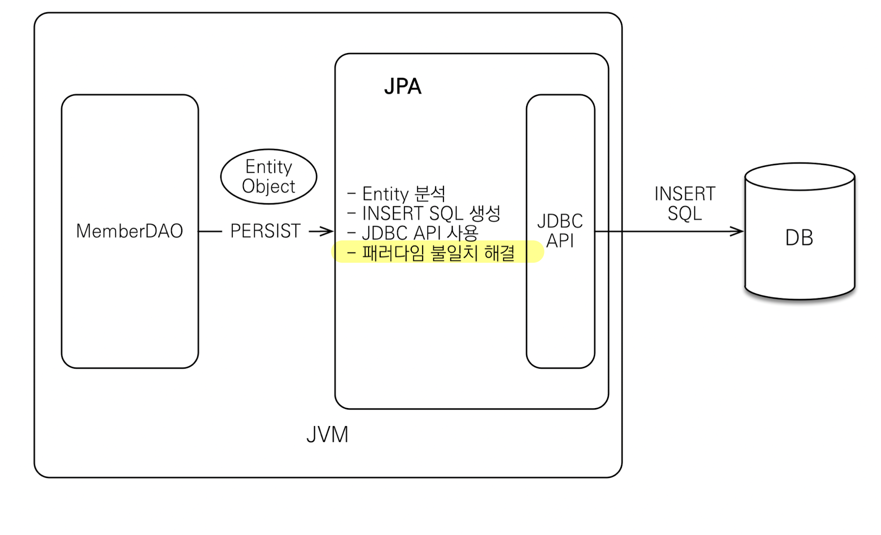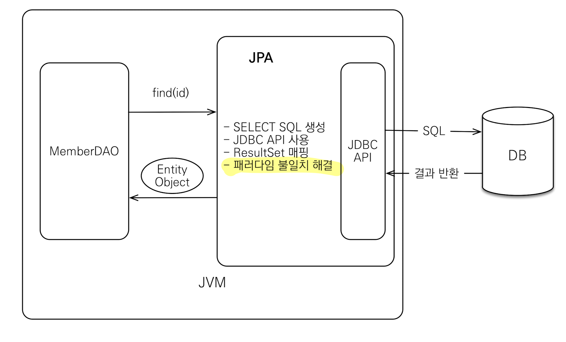 # JPA는 애플리케이션과 JDBC 사이에서 동작