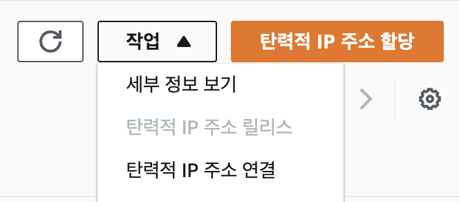 6. 탄력적 IP 주소 할당 후 -> 현재 실행 중인 인스턴스와 연결 (연결 안 하면 과금 발생)