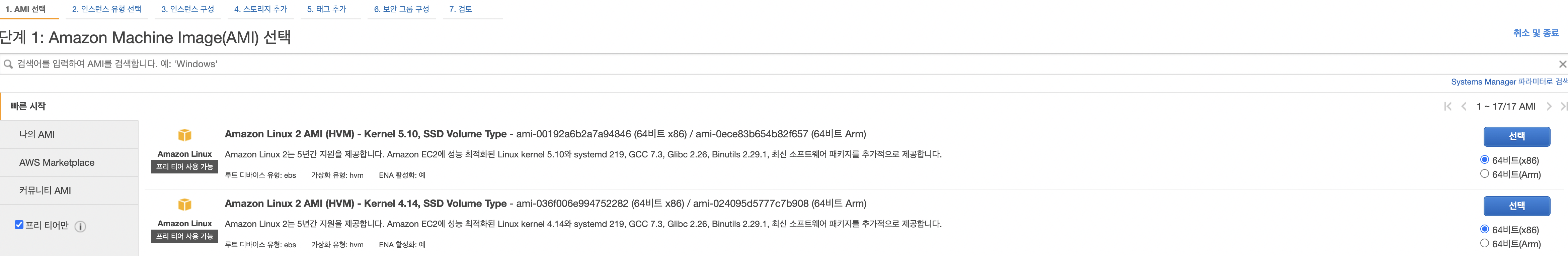 1) 원하는 AMI 선택