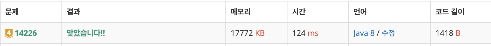 12345678910111213141516171819202122232425262728293031323334353637383940414243444546import java.util.LinkedList;import java.util.Queue;import java.util.Scanner;public class Main14226 {static class Emoticon {int val;int copy;public Emoticon(int val, int copy) {this.val = val;this.copy = copy;}}public static void main(String[] args) {Scanner sc = new Scanner(System.in);int S = sc.nextInt();Queue<Emoticon> q = new LinkedList<>();q.add(new Emoticon(1, 0));int time = 0;boolean[][] vtd = new boolean[S*2+1][S*2+1];loop:while(!q.isEmpty()) {int size = q.size();while(size > 0) {Emoticon e = q.poll();if(e.val == S) break loop;if(!vtd[e.val][e.val]) {q.add(new Emoticon(e.val, e.val)); // 1vtd[e.val][e.val] = true;}if(e.val+e.copy <= S*2 && !vtd[e.val+e.copy][e.copy]) {q.add(new Emoticon(e.val+e.copy, e.copy)); // 2vtd[e.val+e.copy][e.copy] = true;}if(e.val-1 >= 2 && !vtd[e.val-1][e.copy]) {q.add(new Emoticon(e.val-1, e.copy)); // 3vtd[e.val-1][e.copy] = true;}size--;}time++;}System.out.println(time);}}cs #문제풀이